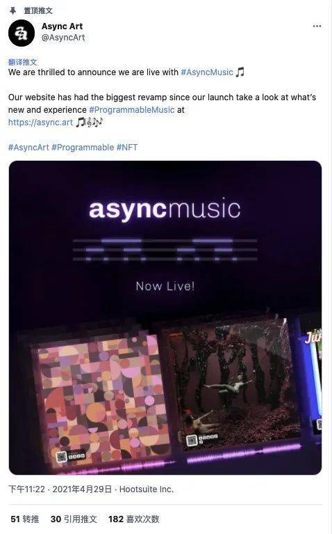 Async-art是一个可编程加密艺术平台,推出了可编程音乐NFT模块Async-music