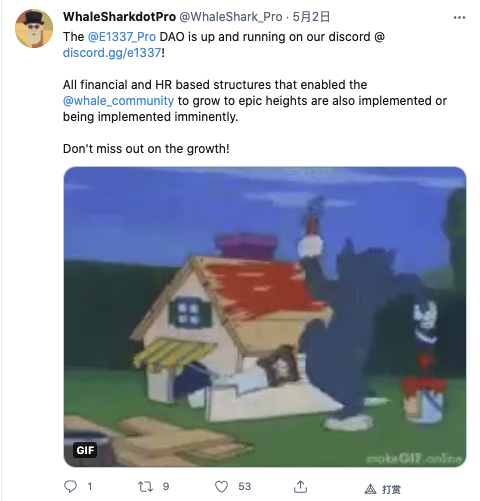 whakeshark的潮牌e1337上线一周,社区数量迅速增加,达到2700多个。此外,e1337 Dao也已推出,并开始在不和谐的运作。持有1337枚代币将获得每月代币空投、实物和数字服装抽奖、社区活动等福利。