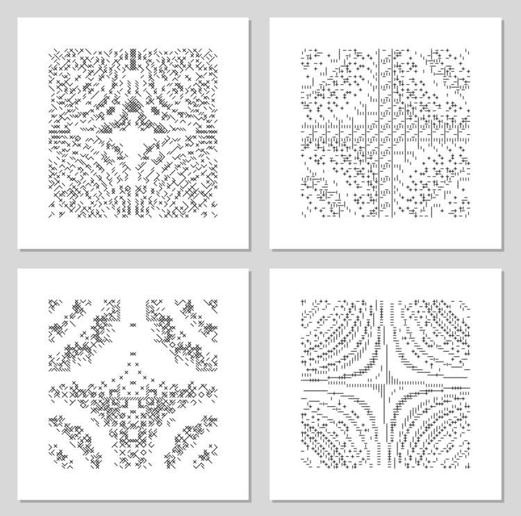 这一系列艺术作品的灵感来源于20世纪60年代一代艺术家迈克尔·诺尔和肯·诺尔顿的作品。当时,电脑的存储容量有限,所以他们只能用这些简单的字符拼凑艺术作品。